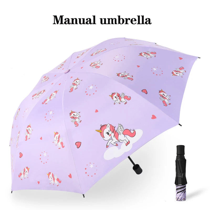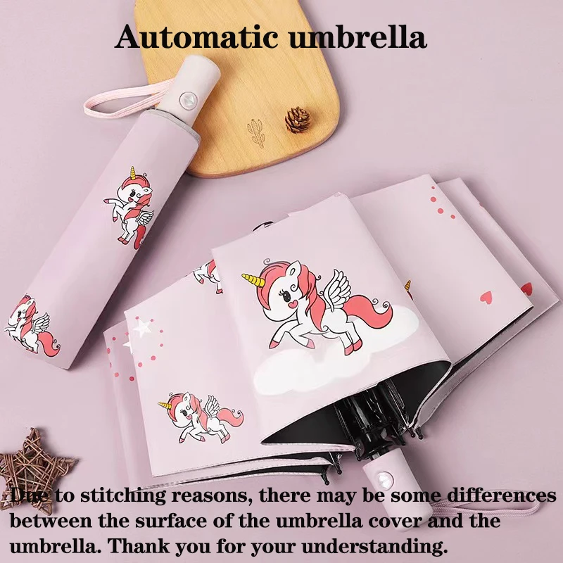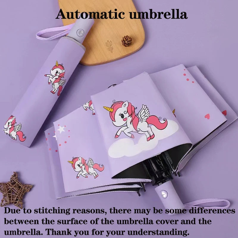 Automatic Umbrella Pink and Purple Unicorns Lovely Umbrella  Shade Umbrellas UV Blocking Rain