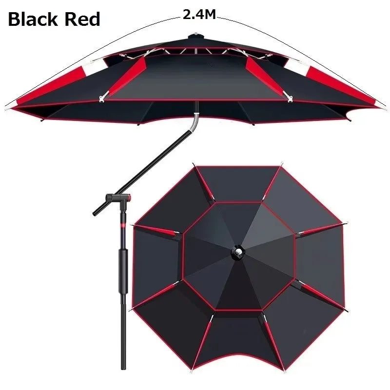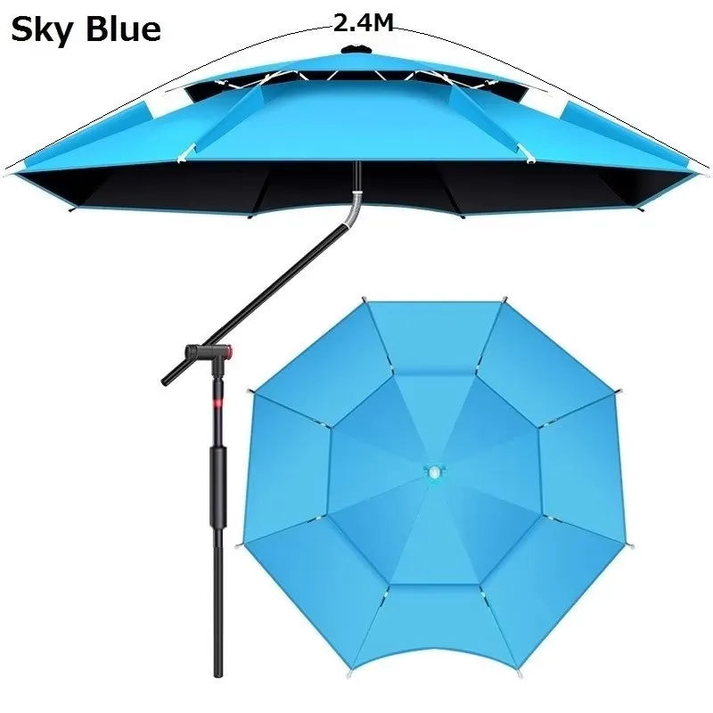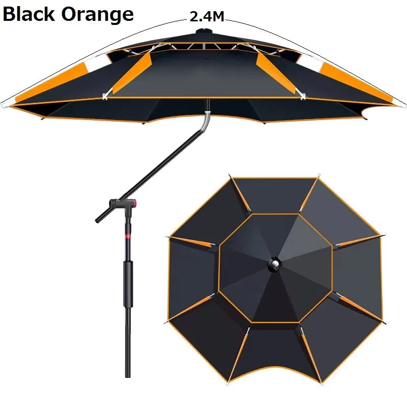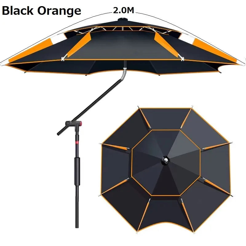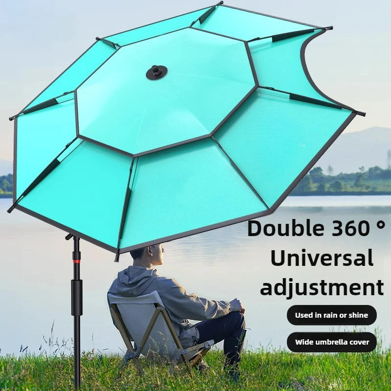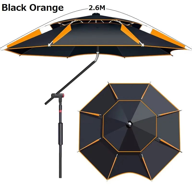 2.0-2.6M Parasol Fishing Umbrella Dual 360 ° Adjustable Fishing Umbrella Double Layer Waterproof